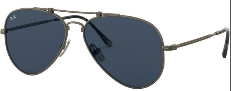 Ray Ban 8125 Titanium aviator, Demi Gloss Pewter with dark blue sunglass lenses.